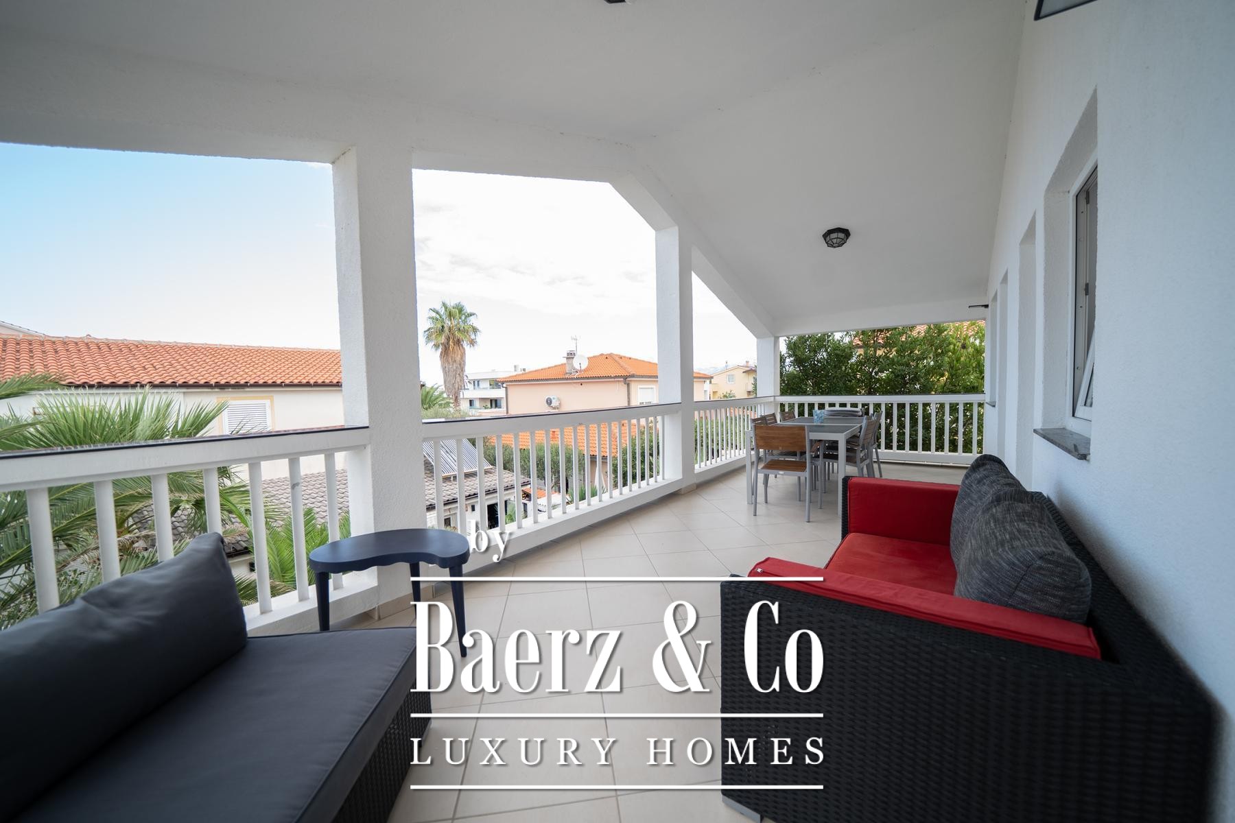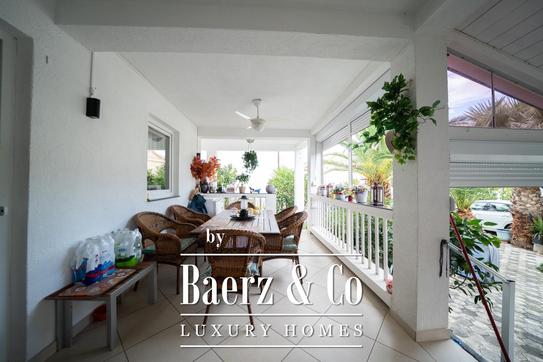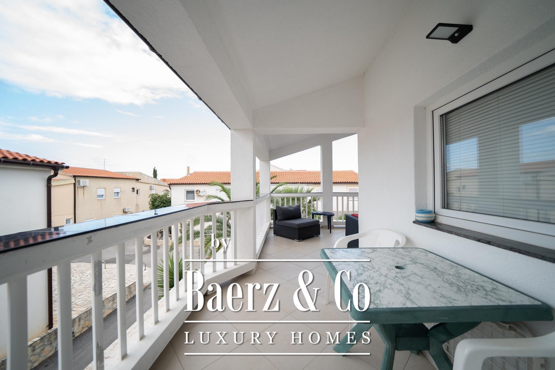 Townhouse Vir presents a rare opportunity to experience discreet island living just seventy metres from the Adriatic, where light and air move effortlessly through 300 m² of thoughtfully arranged interiors. This property comprises two separate apartments, each designed for privacy and harmony, the ground floor offering two bedrooms, a bathroom, kitchen, dining and living areas, and a terrace appointed with a jacuzzi. The upper apartment features four bedrooms, two bathrooms, an airy kitchen and living space, and two terraces, one with a gentle sea view.