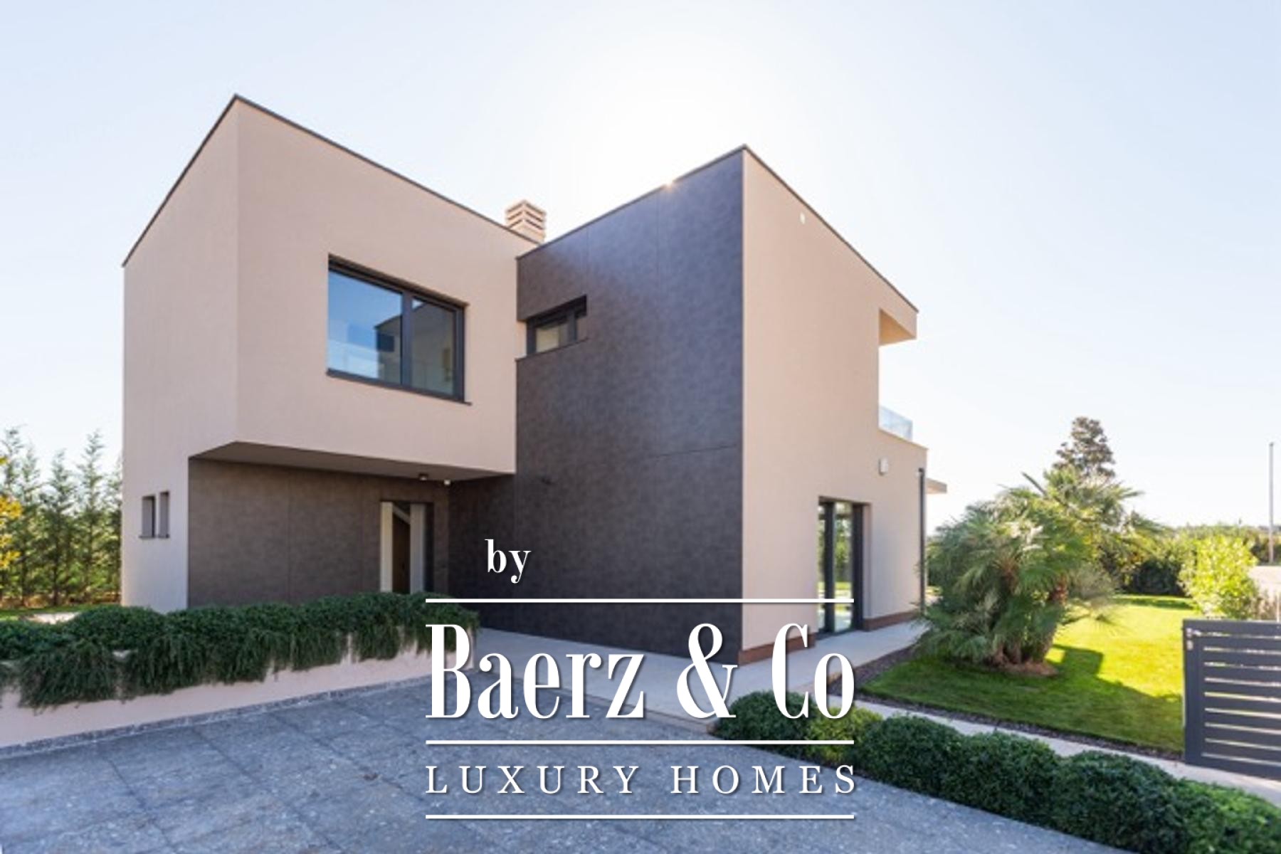The villa’s technical features echo its emphasis on comfort and efficiency: underfloor heating via a heat pump system, air conditioning, triple-glazed aluminium windows with electric blinds and mosquito nets, a dedicated video surveillance system, and a 13.5 kW rooftop solar power plant ensuring energy self-sufficiency. The outdoor summer kitchen and designer touches invite relaxed gatherings, while a technical room with a water filtration system adds further convenience.