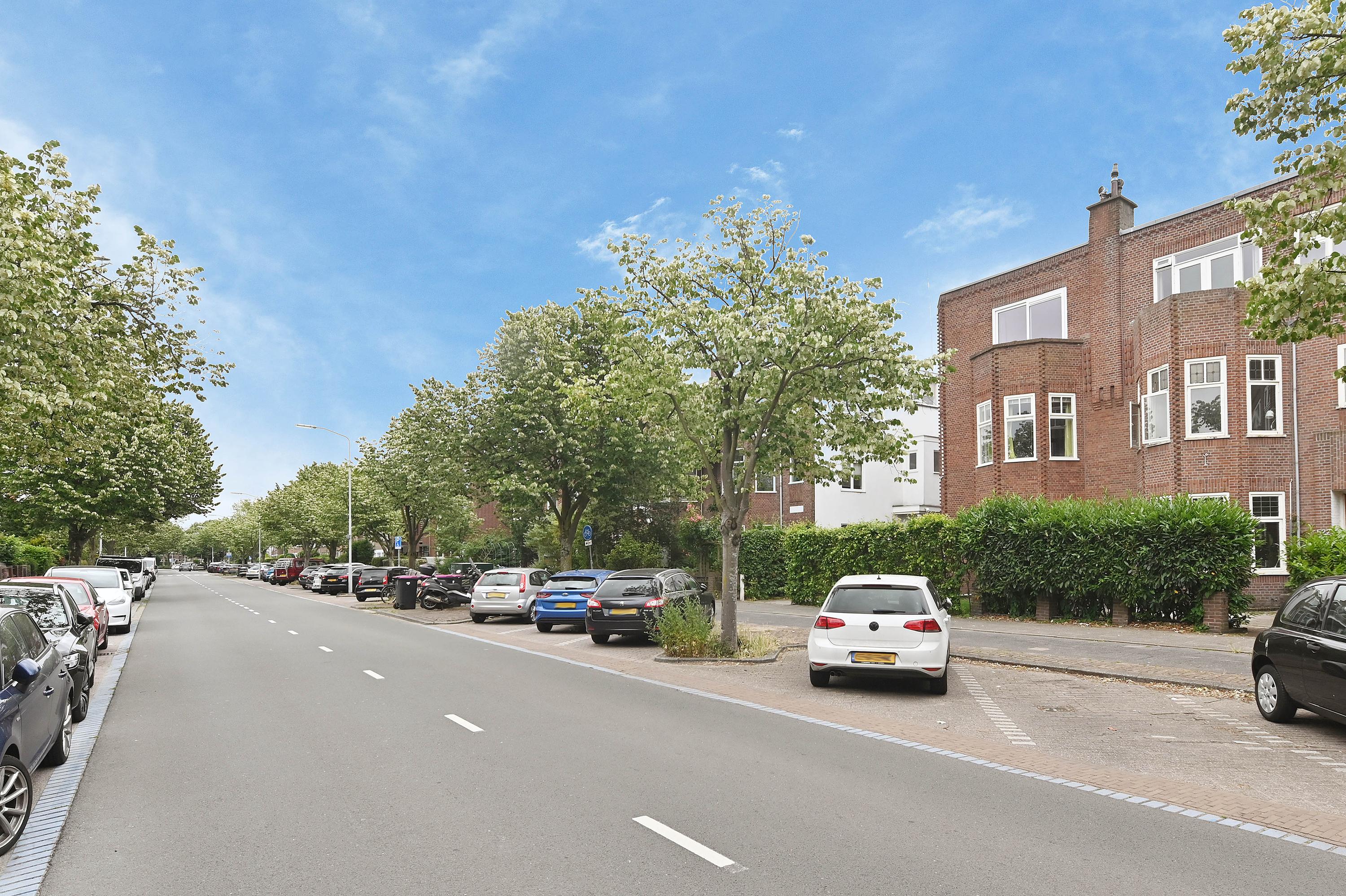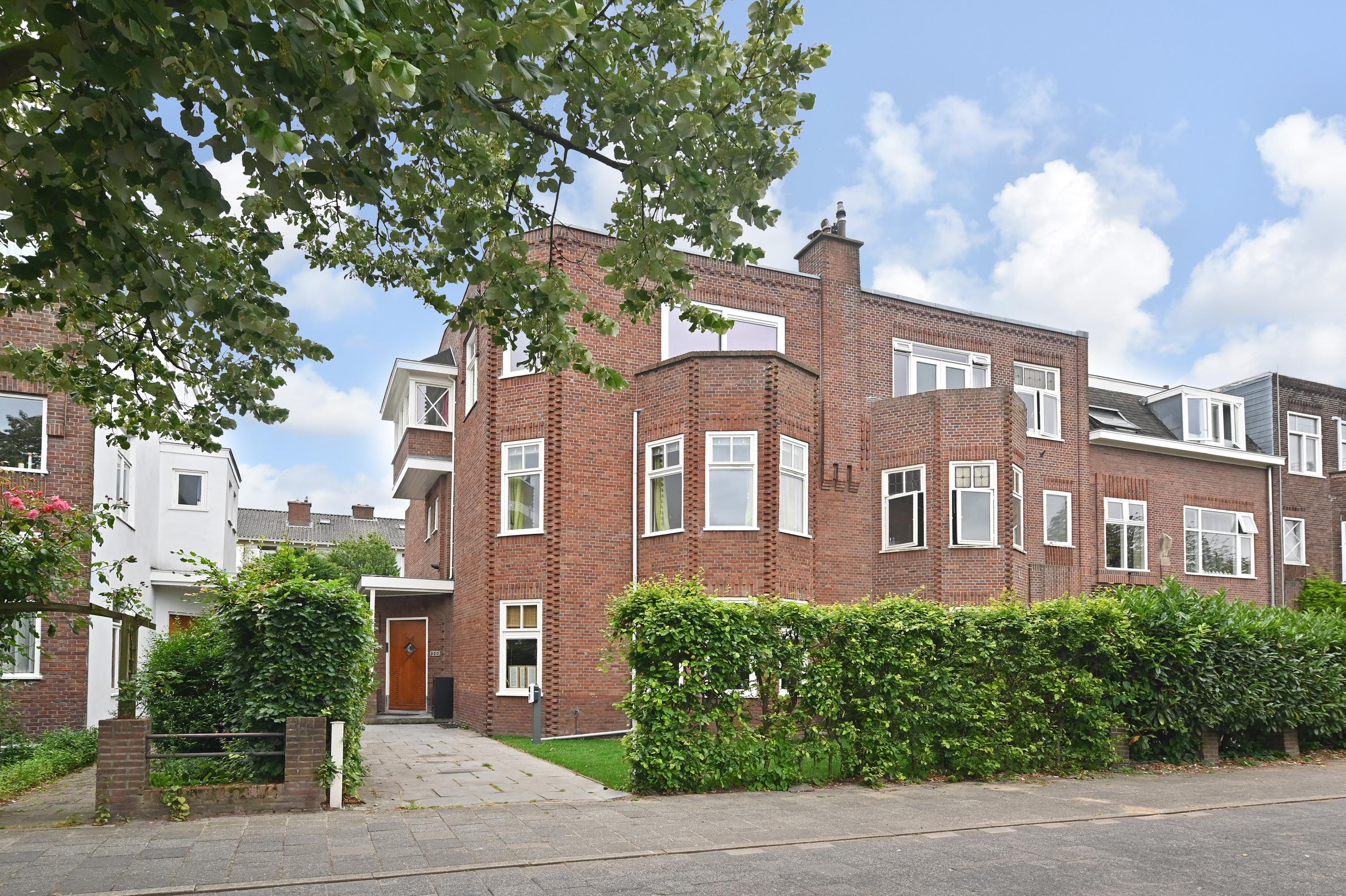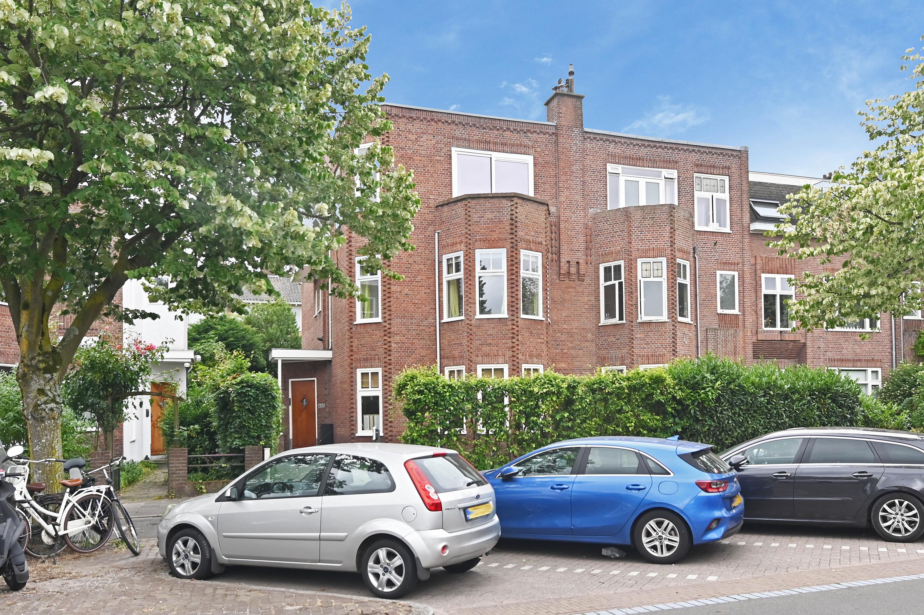 Spacious (ca. 285m2) end-of-terrace house with 7 bedrooms, 2 bathrooms, garden on 3 sides, and a driveway set on a wide, tree-lined street in historic Voorburg.