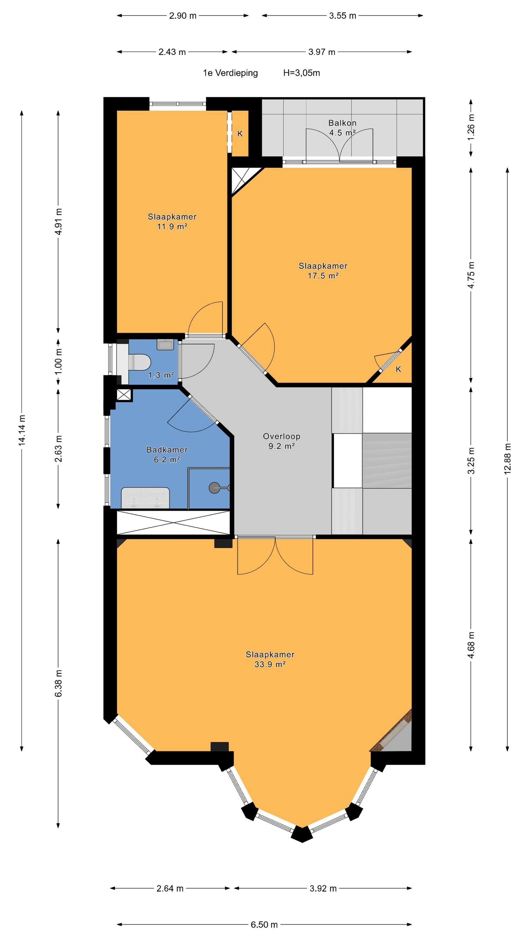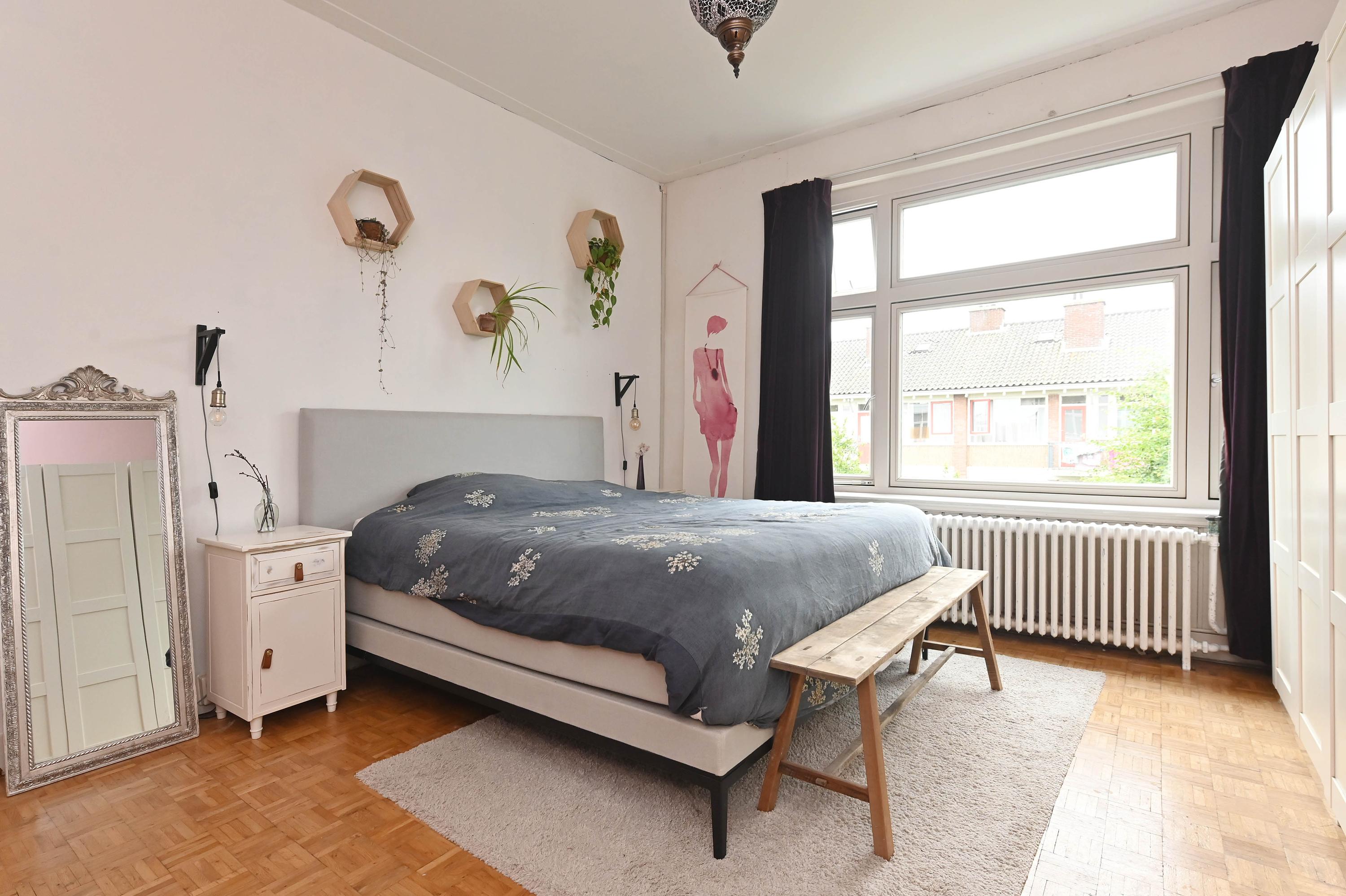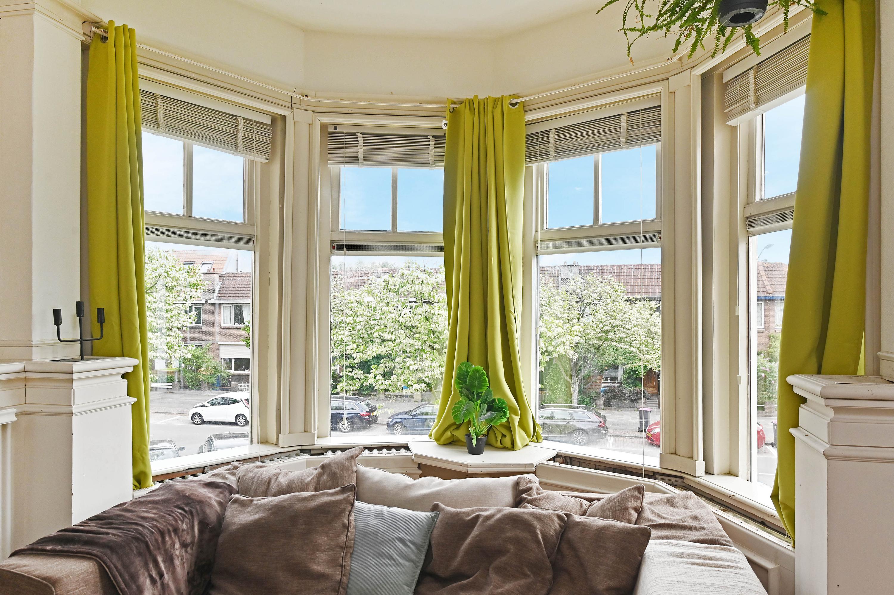 Spacious (ca. 285m2) end-of-terrace house with 7 bedrooms, 2 bathrooms, garden on 3 sides, and a driveway set on a wide, tree-lined street in historic Voorburg.