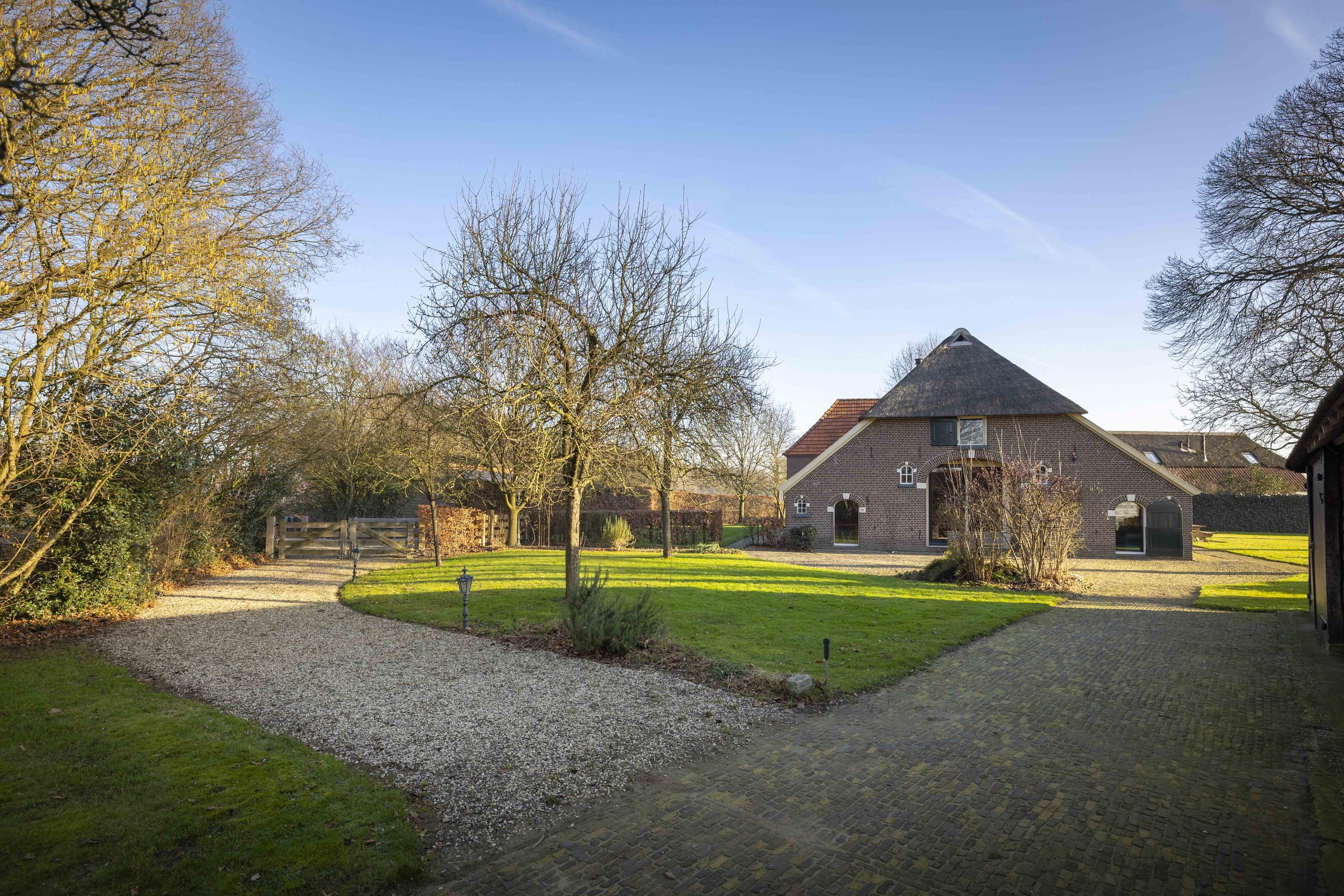 't Norde is as impressive as it is beautiful; a classic, voluminous hall house T-shaped farmhouse from 1863, surrounded by a delightful garden. The house has had several predecessors on this site, with the oldest mention dating back to 1476. The current house, designated a municipal monument by the municipality of Bronckhorst, has been extensively modernized over the past decade. The structure was brought into the 21st century under architectural supervision, with the addition of dormer windows and the transformation of the barn into spacious living space. And nothing beats space around you: this house has an abundance of it, with a living area of 407 m², five spacious bedrooms, and three bathrooms, set on a plot of 2,877 m².