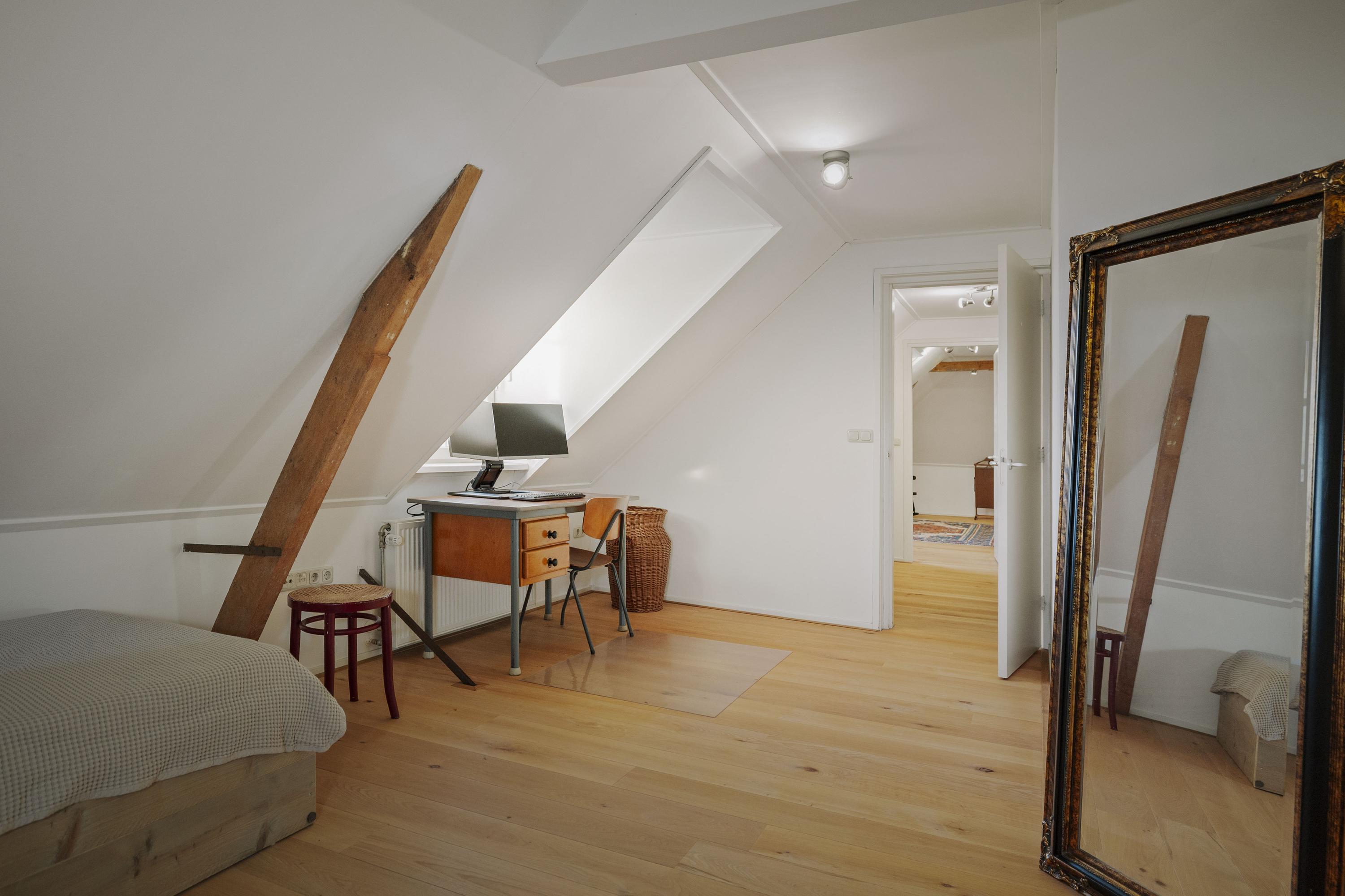 The house is surrounded by a beautiful garden. There is a shed with a carport and a lockable garden tool shed at the rear (with 39 solar panels on the roof - nicely out of sight), so the cars stay dry, as do the garden tools. There is also a second wooden outbuilding (with 6 solar panels on the roof), built in a rustic style with clapboard siding, old Dutch roof tiles, and sturdy trusses. The outbuilding offers space for parking two cars. Due to the orientation of the house, there is a lovely sun terrace behind the property. There are large lawns at both the front and rear, and privacy is guaranteed by the man-sized beech hedges.