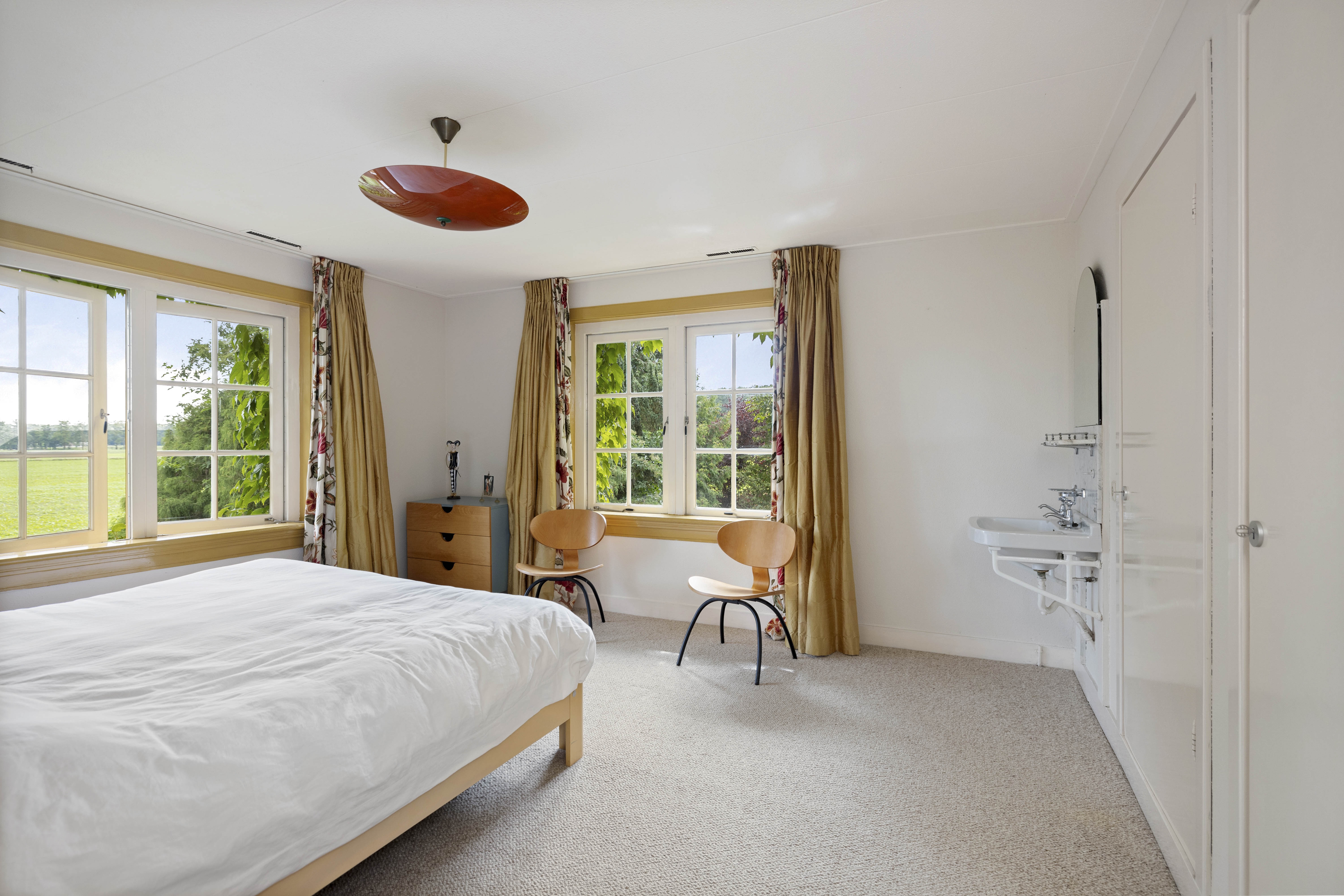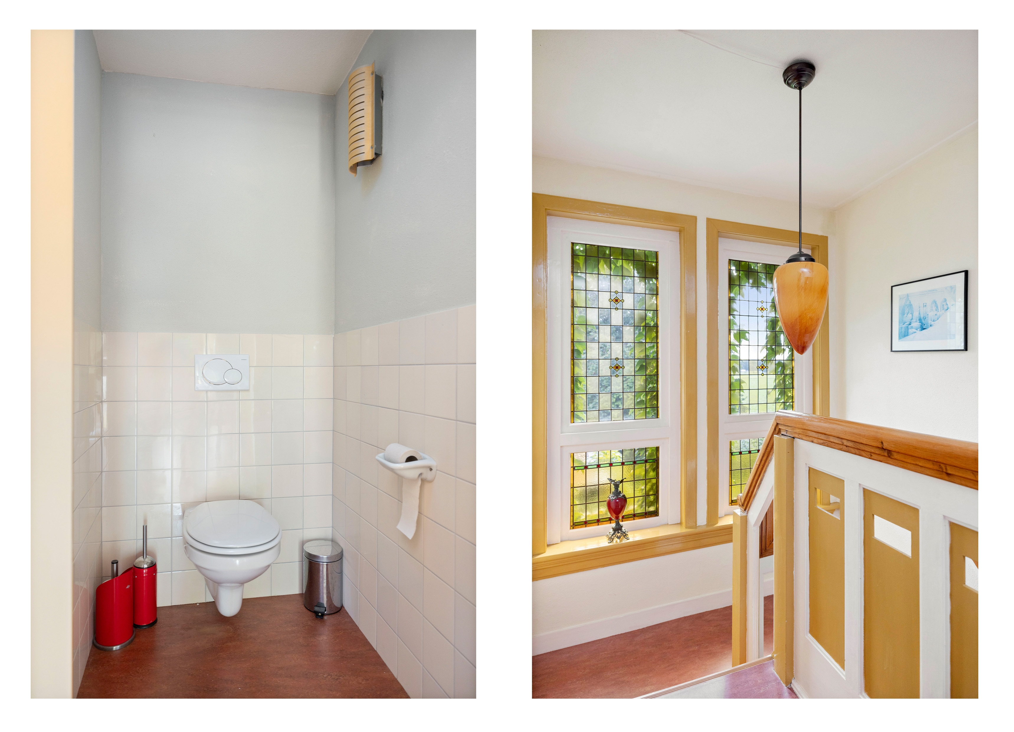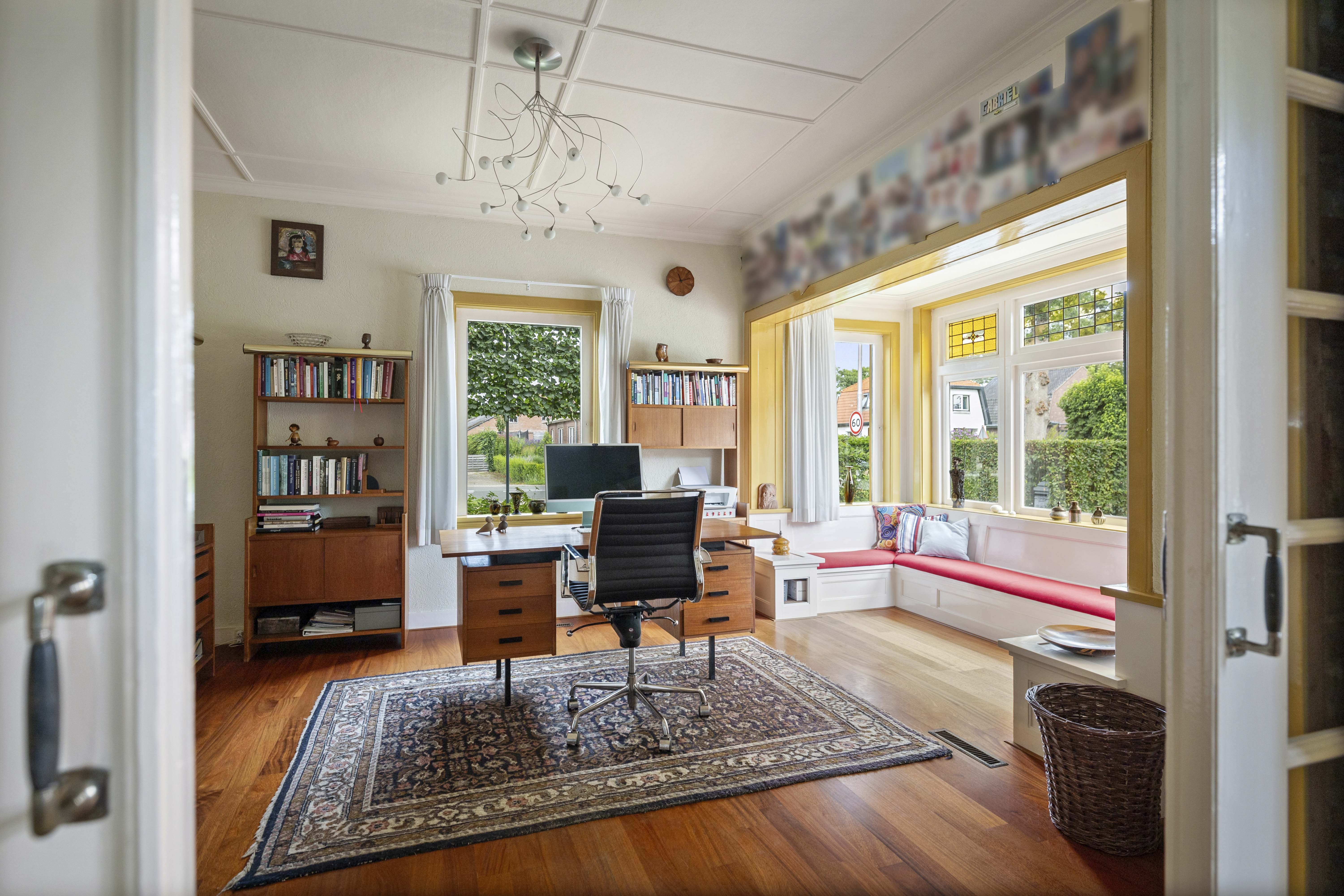 Like many of his colleagues, Bakker designed “total works of art”; exterior and interior flowed effortlessly into one another and every detail was carefully considered. From the stepped bridge in the hall to how the sunlight would scatter the colours of the stained-glass skylights across the floor, the ceilings, the staircase, the bay window, the glazing bars and the unique pentagonal window in the garden room – everything is part of the whole. A house with a character all of its own.