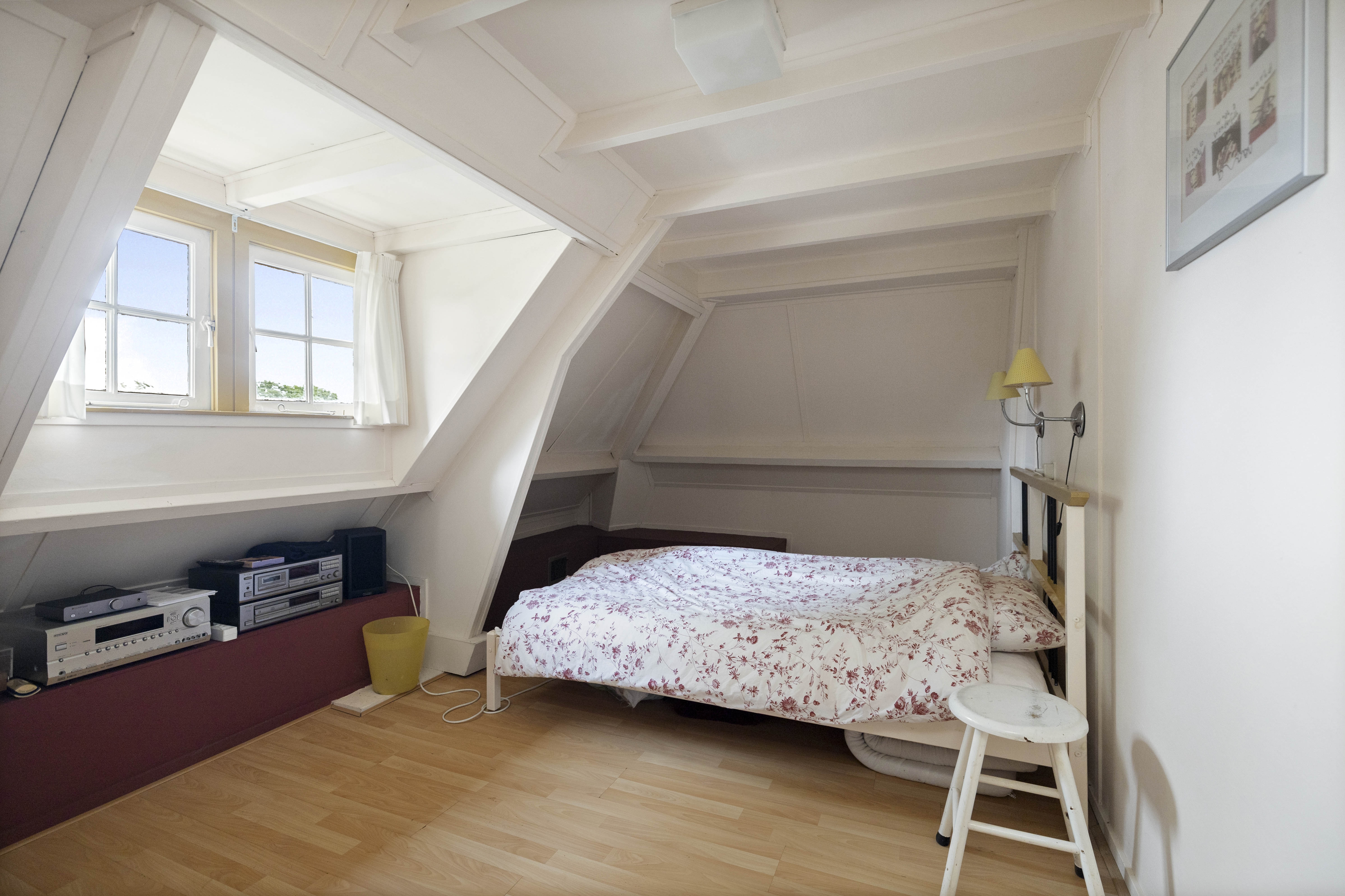 The attic is accessible by a fixed staircase and houses the fourth bedroom. The storage attic is beautiful and spacious and offers all kinds of possibilities, from an extra bathroom and bedroom to creating a yoga studio or space for a fanatical table tennis competition for the whole family.