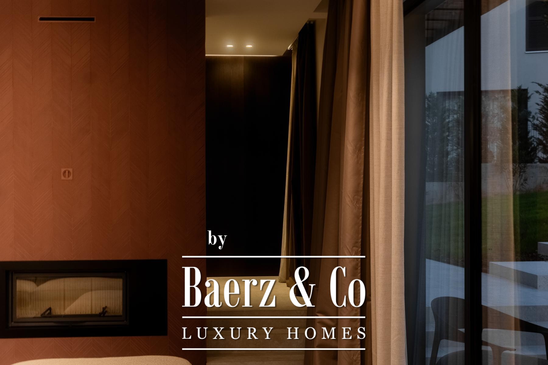 On the upper level, three individually designed bedrooms each feature their own bathroom, providing a refined sense of privacy and comfort. Throughout, ceiling heights reach 3 metres, elevating the sense of space. The villa is constructed with premium finishes, from aluminium joinery and underfloor heating via heat pump to Italian designer furniture and appliances by Miele, Liebherr, and Faber.