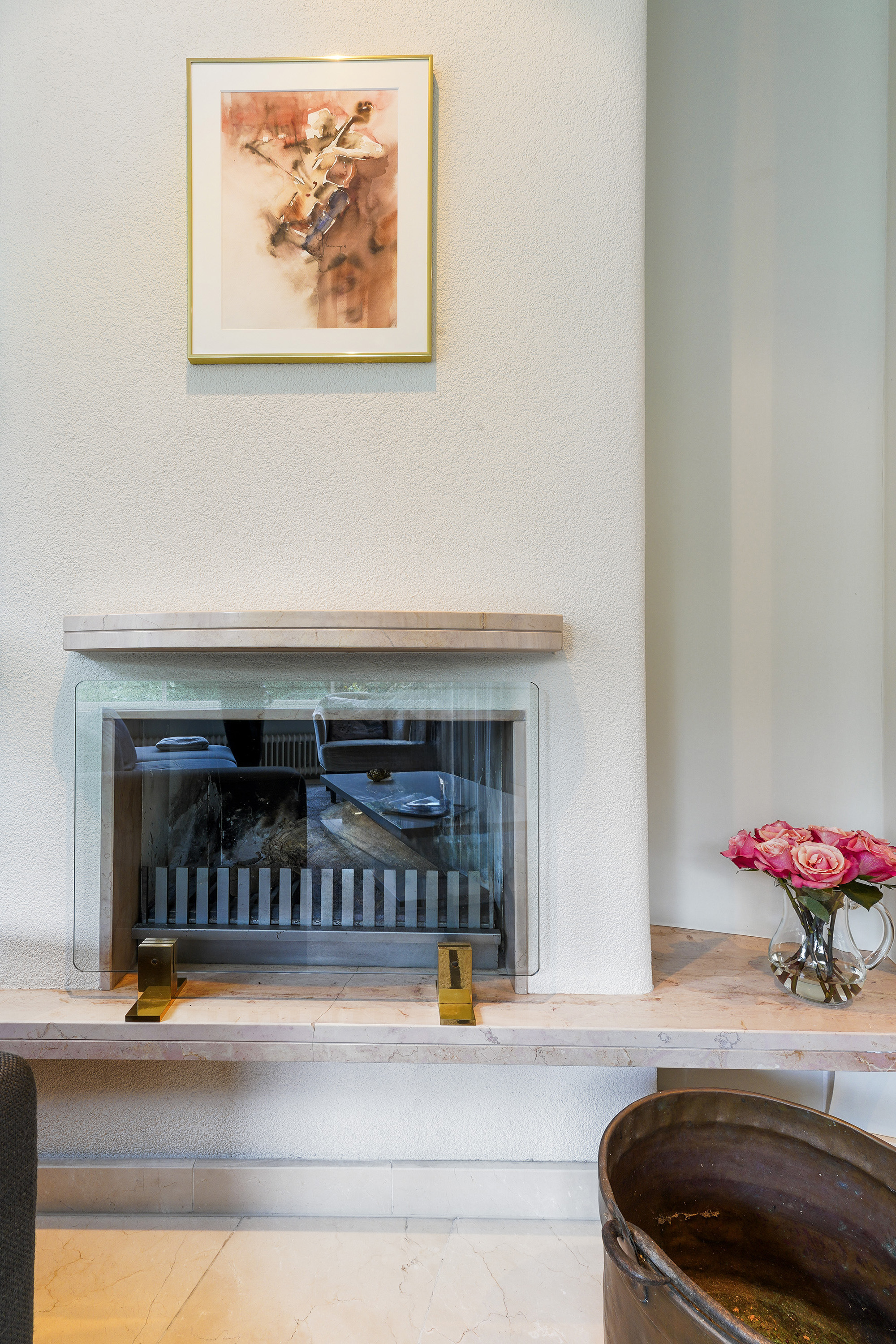 Upon entering, the spatial arrangement immediately conveys a sense of light and openness. An expansive ground floor, around 70 m², flows effortlessly from sitting area to dining space and open-plan kitchen, all bathed in natural light from large windows. Materials such as travertine flooring and light-toned walls set a restrained, sophisticated tone. The kitchen is expertly appointed, complemented by a natural stone worktop and integrated appliances, while a practical utility room and a 17 m² storage area address daily needs with quiet efficiency. Additional storage and a dedicated cellar space offer further versatility, whether for provisions or a wine collection.