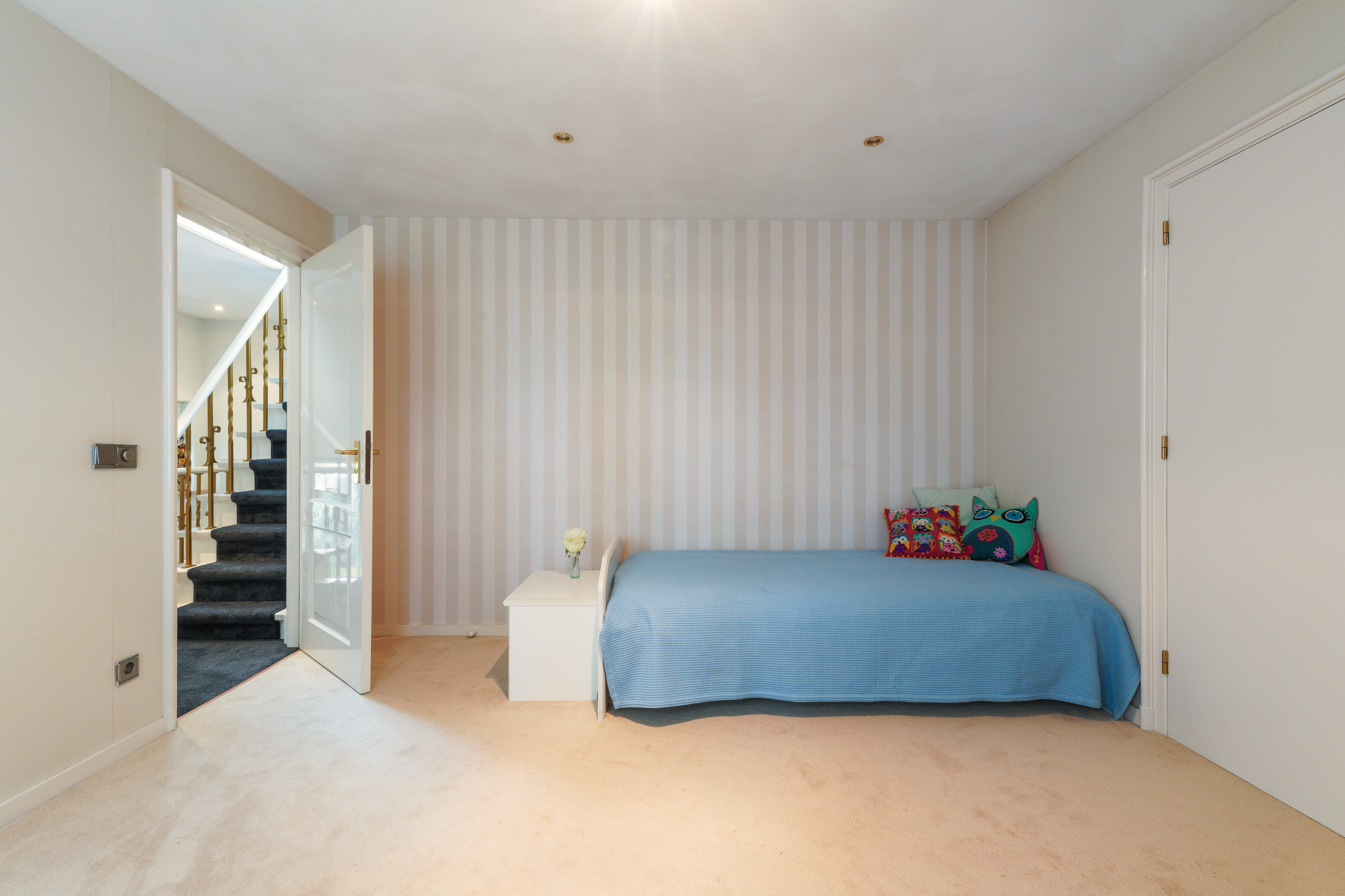 The second floor reveals two further bedrooms, their dimensions enhanced by roof windows that bring in natural light. Discreet storage solutions complete the thoughtful layout.