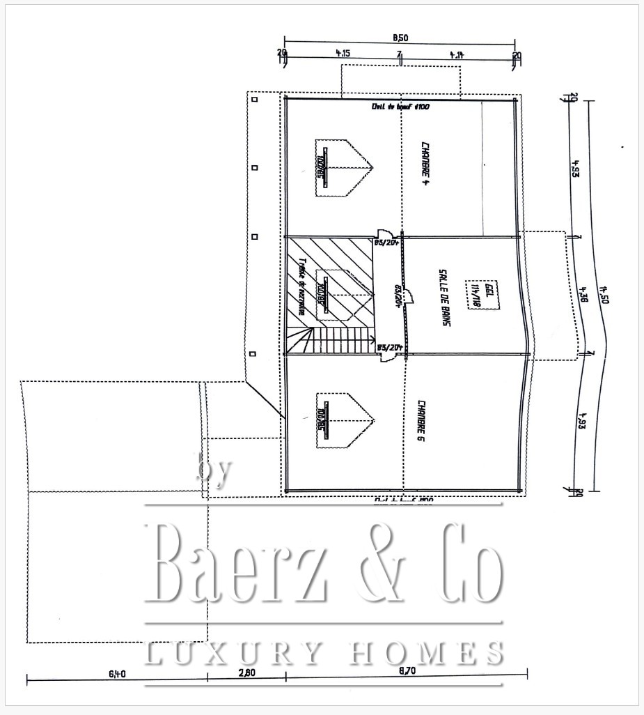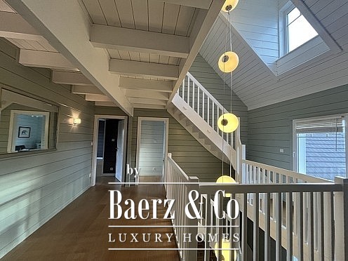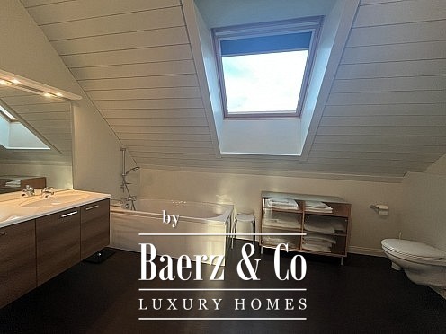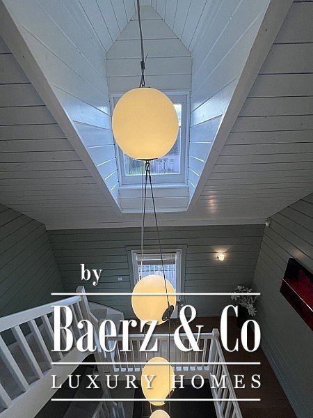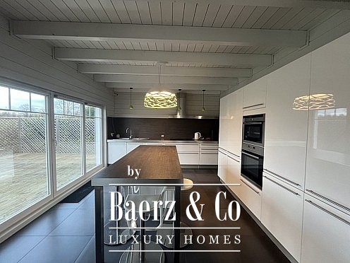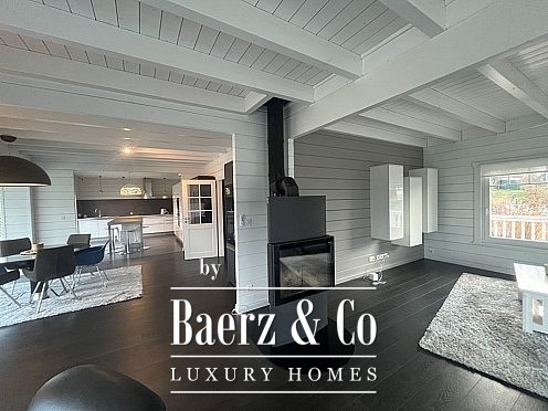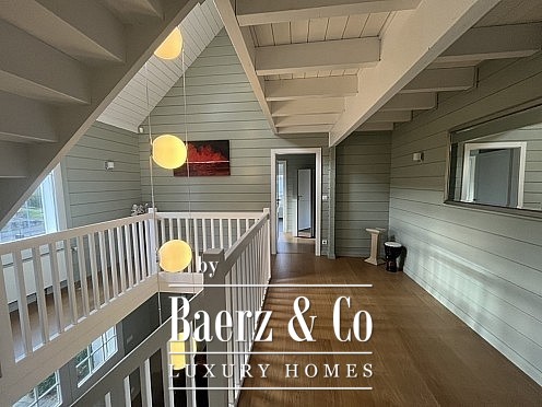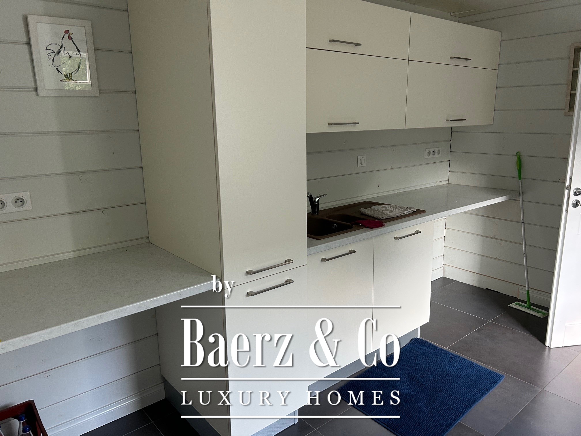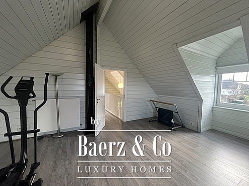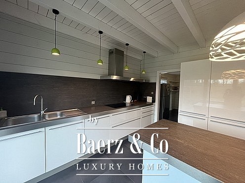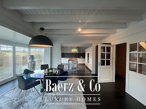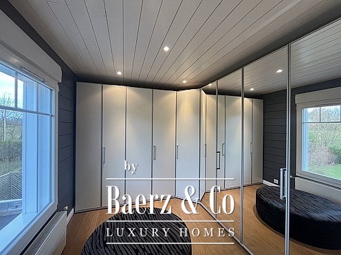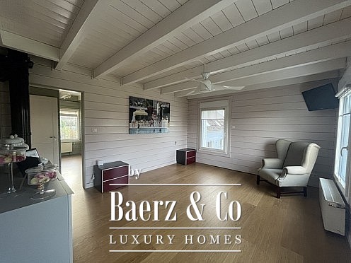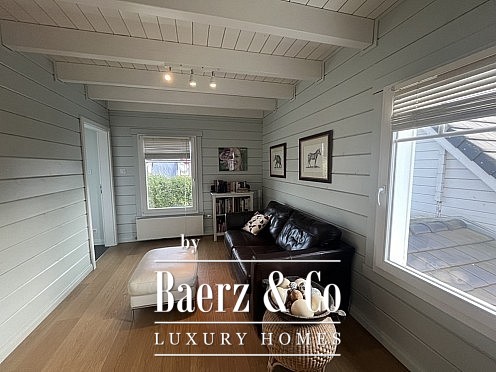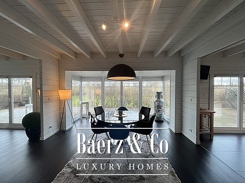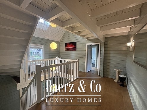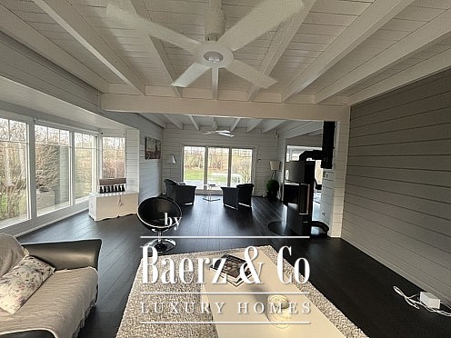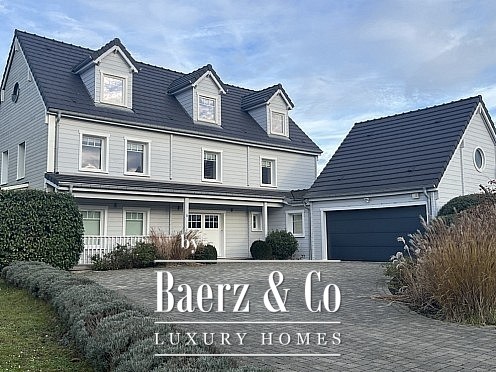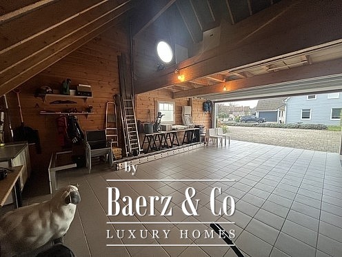 The living and dining areas are suffused with natural light, anchored by a wood-burning stove that brings warmth and quiet rhythm throughout the seasons. Five bedrooms and three bathrooms are distributed to foster both privacy and conviviality, complemented by two bespoke dressing rooms and a mezzanine that enhances the spatial experience. The open kitchen serves as the heart of the home, ideal for hosting or daily gatherings. Modern connectivity is ensured by high-speed fiber-optic internet and satellite TV. Practicality meets comfort with a dedicated mudroom, washroom, wine storage, and a 52 m² garage accommodating up to four vehicles.