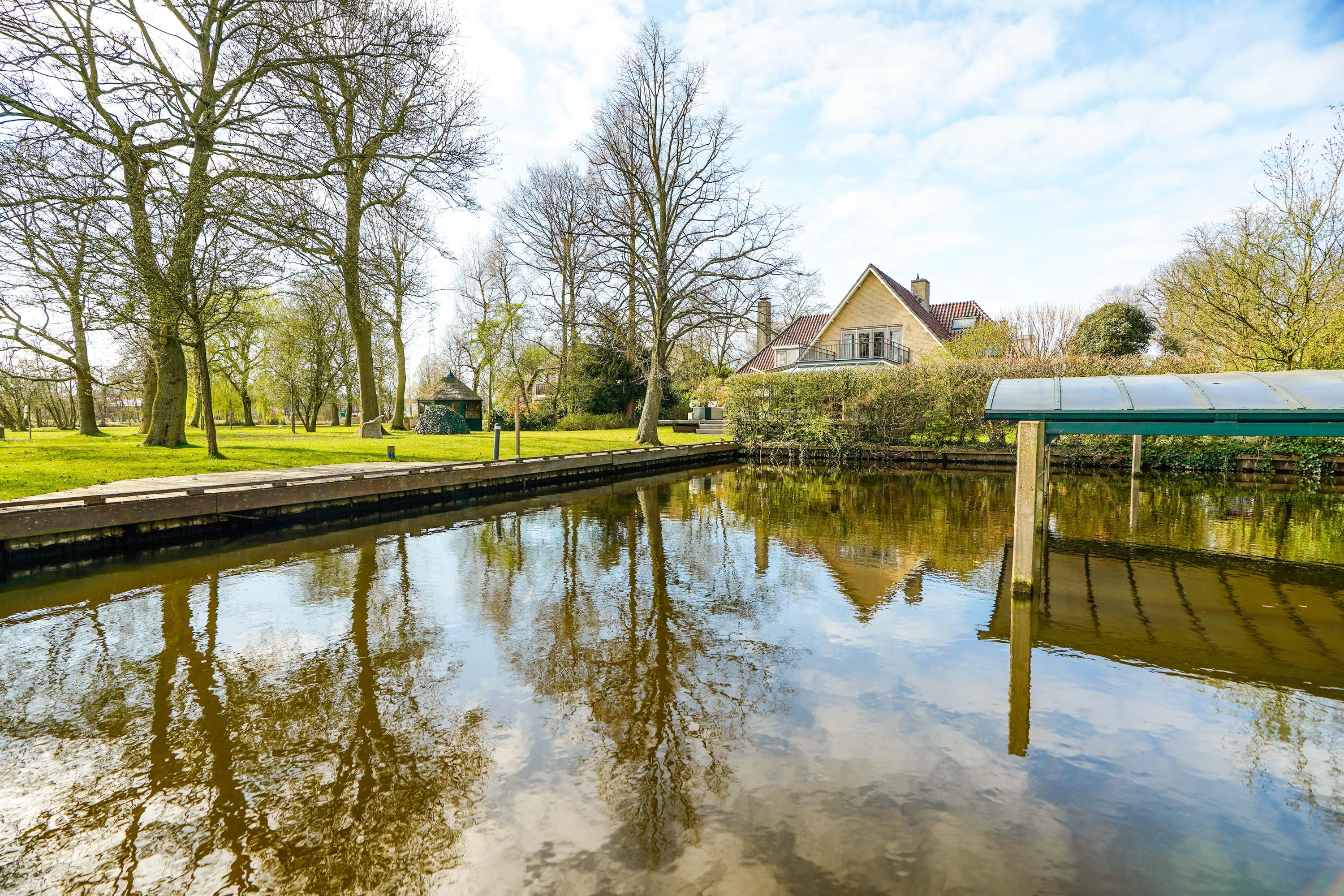 What makes this property so special is that it is situated on 1,032 m² of private land and that you, as the owner, join the VvE that owns and leases (in perpetuity) another 6,500 m² of land and water. This plot includes a beautiful private park and an inner harbour, both exclusively intended for the exclusive use of you and the owners of the 5 adjacent villas. The photos already show the enrichment of this: the plot can be described as a green oasis and offers a lot of privacy. On the other side of the water you look out over the nature reserve 'Polders Poelgeest'.