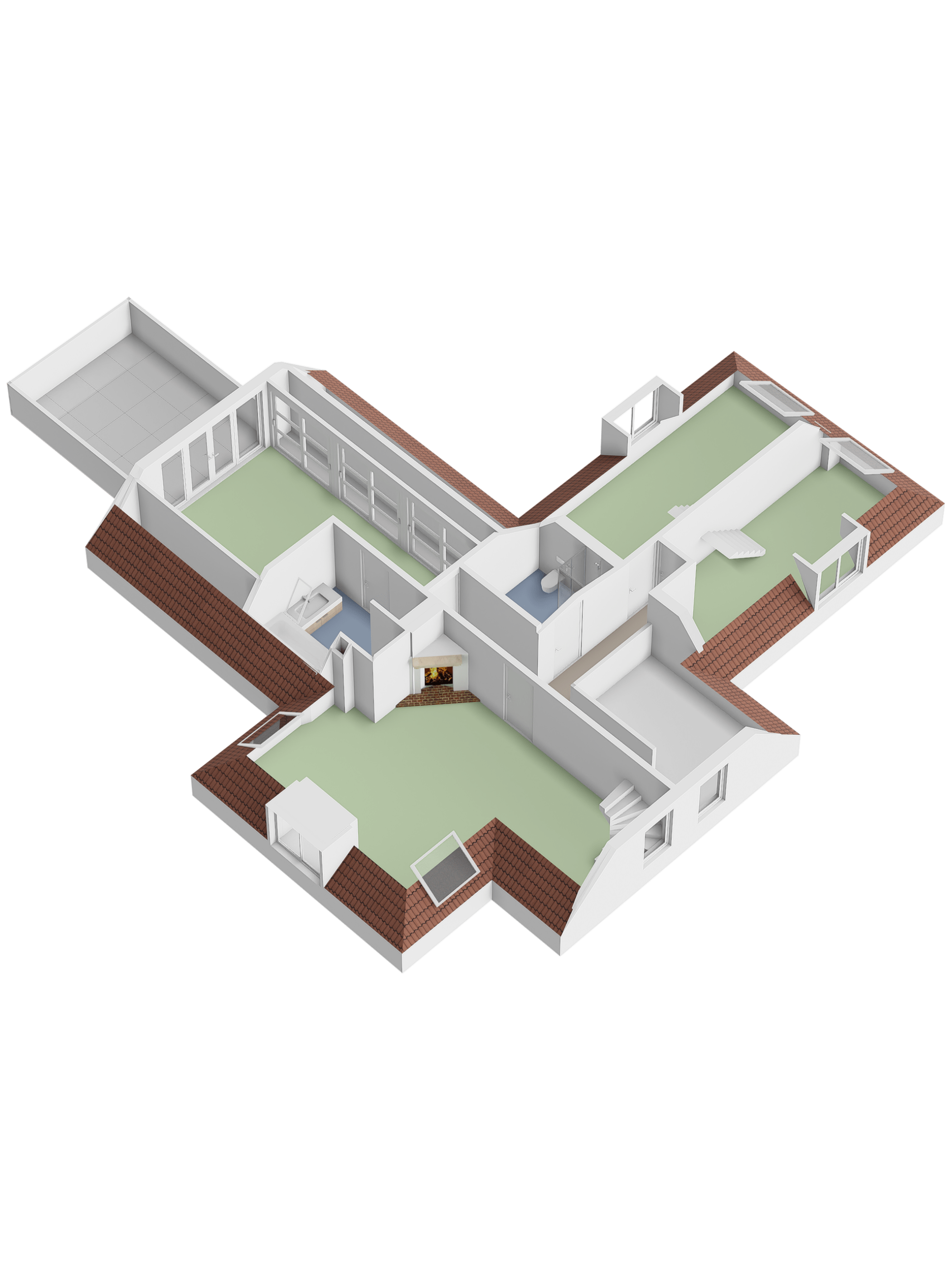 Landing, the first bathroom with shower, double sink and a toilet. Two spacious, identical children's bedrooms with a fixed staircase to a sleeping loft. The master bedroom has its own bathroom en suite (equipped with underfloor heating), fixed cupboard wall and French doors to a roof terrace with breathtaking views. Last but not least, on the first floor you will find the very spacious study with gas fireplace, view of the water, custom-made built-in cupboards and a fixed staircase to the vide and large storage attic.
