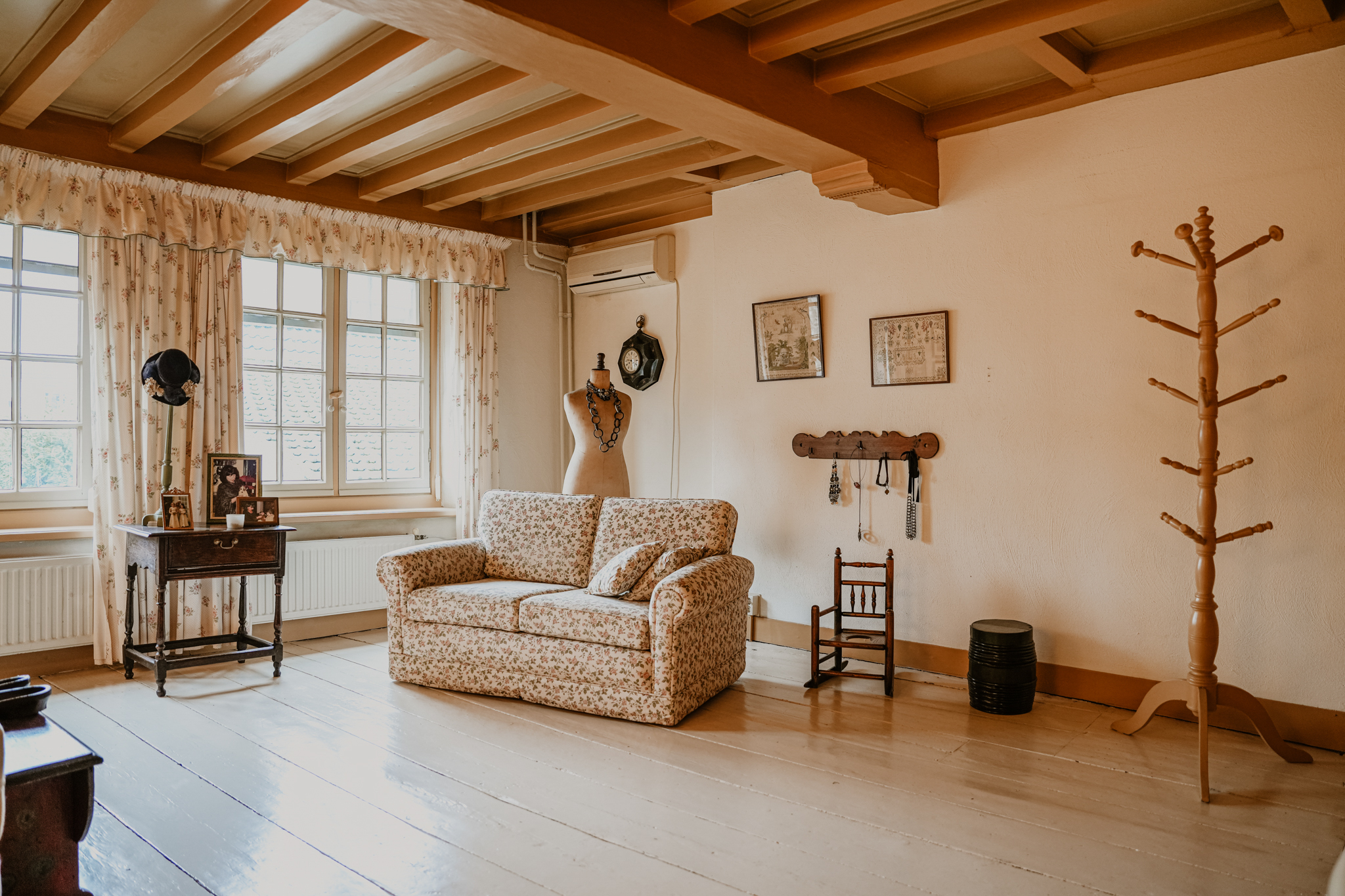 Upstairs, light streams through sash windows onto wide floorboards. Each of the seven bedrooms is defined by original beams or elegant paneling, while the attic and heated rooms offer further possibility. Modern comfort discreetly underscores the setting with air conditioning, natural ventilation, Intergas HRe heating, and the potential for open fires. The Monumentenwacht’s careful stewardship and a full restoration by the Dutch Heritage Agency ensure preservation resonates in every detail.