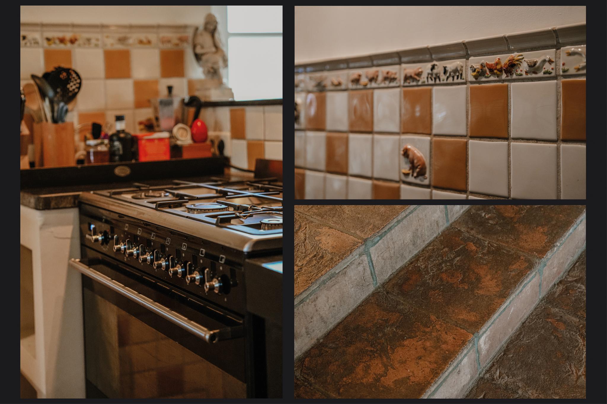 The entrance, through a shared Dutch door on the side of the house, provides direct access to the spacious kitchen. On the dike side, there is an elevated dining area that seamlessly blends with the handcrafted kitchen. The kitchen features a beautiful Belgian bluestone countertop with an authentic pump basin. From the kitchen, you have direct access to the river-facing terrace. Adjacent to the dining room is a spacious utility room with laundry connections, where the inverter and home battery are also located. The lower section leads to the garden/office room, a bedroom, a toilet, and a new (guest) bathroom with a walk-in shower and vanity.